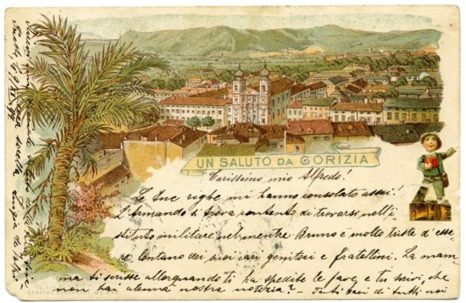 | NOTE | Sul recto: [...]sch Wien. Gesetzl. Geschützt No. 270.". Cartolina viaggiata il 09.11.1899. La figura accanto al titolo è un collage. |