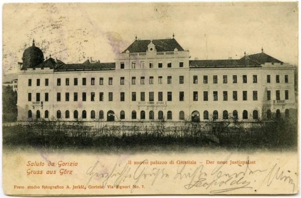 | NOTE | Sul recto: titolo; titolo parallelo "Der neue Justizpalast"; "Prem. studio fotografico A. Jerkič, Gorizia, Via Signori no. 7.". Cartolina viaggiata; data del timbro postale non leggibile. |