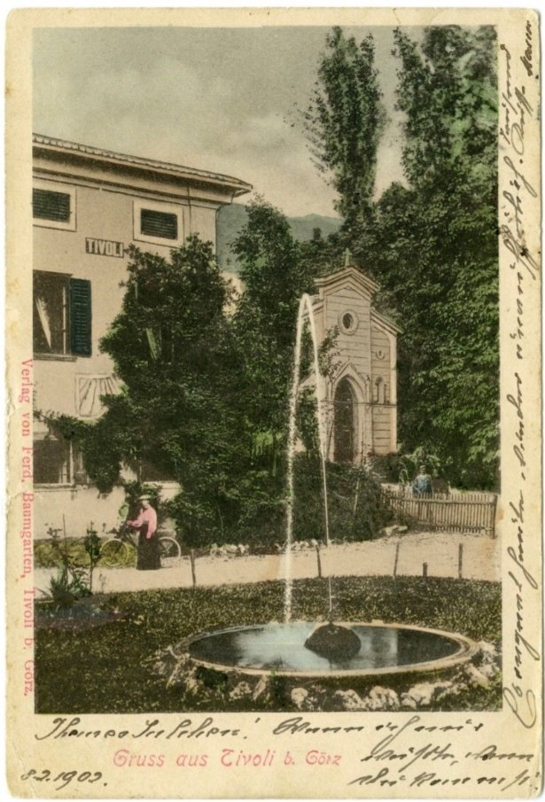 | NOTE | Sul recto: "Verlag von Ferd. Baumgarten, Tivoli b. Görz.". Cartolina viaggiata il 09.02.1902. La località denominata Tivoli era in Valdirose, oggi in territorio sloveno, a est di Gorizia, lungo il corso del torrente Vertoibiza. |