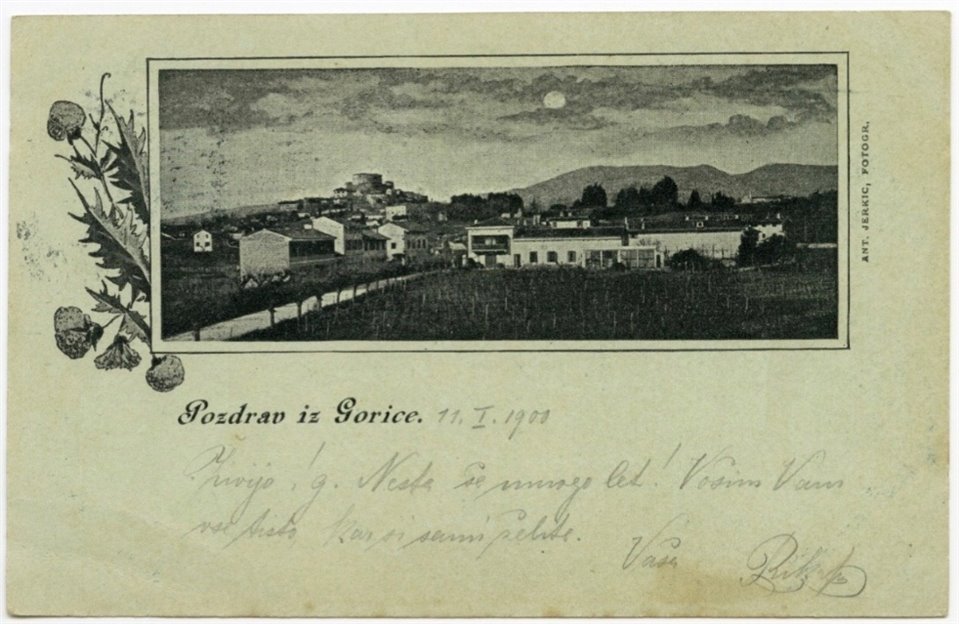 | NOTE | Sul recto: "Ant. Jerkic, fotogr.". Cartolina viaggiata; francobollo asportato. Data del timbro postale illeggibile. Data del testo 11.01.1900. |