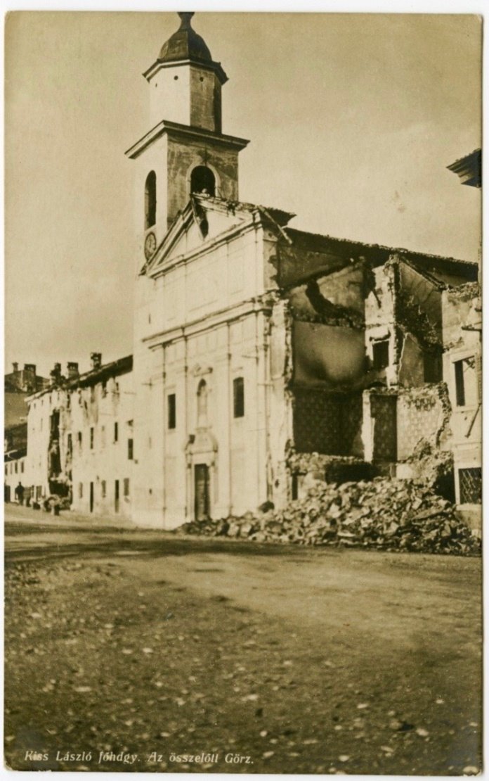 | NOTE | Sul recto: "Kiss László főhdgy. Az összelőtt Görz". Sul verso: "[logo] Hadifénykép kiállitás/ Az elesett hősök özvegyei és árvái javára (...)"; "Levelezö Lap A Hadsegélyezö Hivatal Kiadványa". Cartolina di una serie emessa in occasione di una mostra fotografica sulla guerra in corso per la raccolta di fondi a favore delle vedove e degli orfani di guerra (1916). |