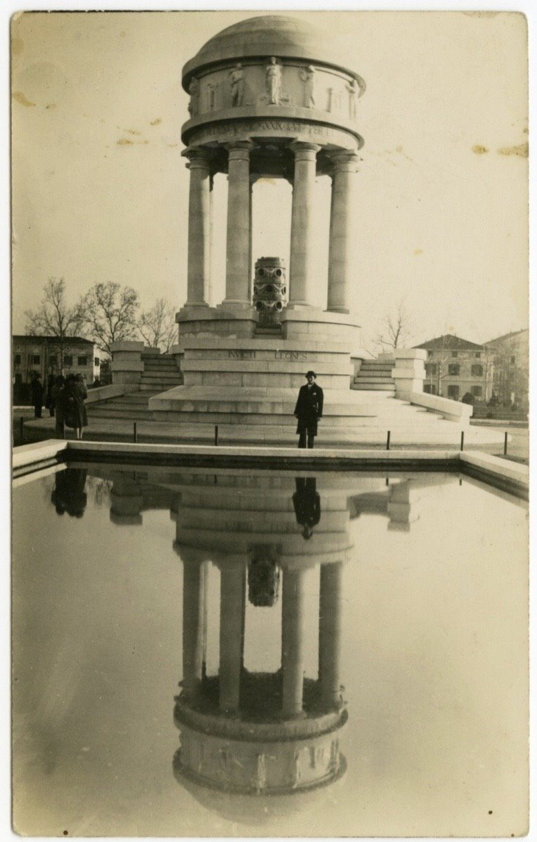 | NOTE | Titolo attribuito dallo schedatore. Cartolina non viaggiata. Nel 1923 fu indetto il concorso per la realizzazione del monumento ai Caduti goriziani che da volontari avevano combattuto per l'esercito italiano nel corso della Prima guerra mondiale. Sarebbe sorto nell'area del vecchio cimitero della città trasformato in Parco della Rimembranza. Risultò vincitore il progetto di Enrico del Debbio che ideò un tempietto circolare a otto colonne doriche. Il monumento, iniziato nel 1926, fu inaugurato l'8 agosto 1929 alla presenza del principe ereditario Umberto di Savoia. |