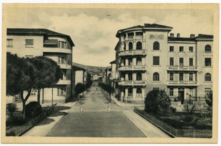| NOTE | Sul verso: titolo; "Ed. Esclusiva G. Cumar - Gorizia"; "Stab Grafico Cesare Capello - Milano". Cartolina non viaggiata. La via Mattioli ripresa dal Parco della Rimembranza all'incrocio con via Canova. A sinistra casa Schiozzi (arch. Umberto Cuzzi, 1935). La veduta inquadra al centro il Castello che appare a fine restauri (1937). |