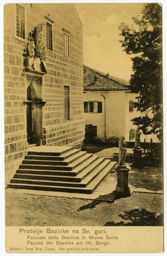 Pro čelje Bazilike na Sv. Gori. Facciata della Basilica di Monte Santo. Façade der Basillika am Hl. Berge. |