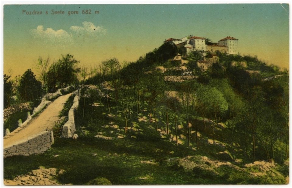 | NOTE | Sul verso: "Žaložil : Ivan Nep. Černe"; timbro "Sv. Gora Pri Gorici". Cartolina viaggiata; data del timbro postale illeggibile. Veduta del santuario da nord-ovest con la strada di accesso. |