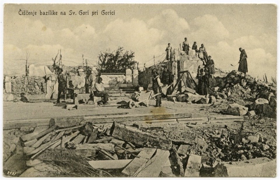| SOGGETTO | Salcano/Solkan (Nova Gorica) - Santuario della Beata Vergine di Monte Santo - Danni di guerra - Guerra mondiale 1914-1918 |