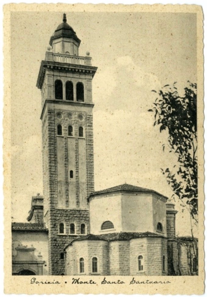 | NOTE | Sul verso: "F. Brescia, Trieste - Via C. Ghega 8 - 1939 XVII". Bordi ondulati. Cartolina non viaggiata. Ripresa da est della nuova basilica di Monte Santo con abside e campanile completato nel 1927. |