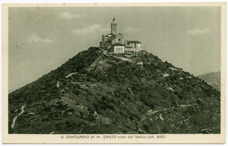 | NOTE | Sul verso: "Proprietà esclusiva del Santuario di M. Santo"; "Stab. Pezzini - Milano IV - 1936 XIV". Cartolina viaggiata il 07.06.1937. |