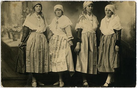 | Soggetto | Quattro giovani donne in abito popolare, di cui una è forse Pierina Cristiani in Altran, in atelier |