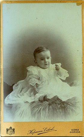 | Note | Sul recto del supporto secondario: Hofmann-Eckerl GÖRZ GORIZIA. Sul verso del supporto secondario: Photographische Kunst-Anstalt Hofmann-Eckerl Atelier für Malerei u. Vergrösserungs-Anstalt GÖRZ-GORIZIA Corso Francesco Giusepppe 34. Negative bleiben reservirt. Si conservano le negative. LITH.K.KRZIVANEK WIEN Giuseppe Baumann, nato nel 1905, è ritratto a pochi mesi d'età. |
