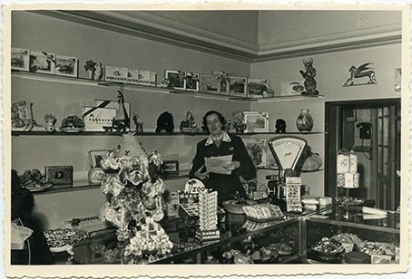 | Soggetto | Interno del negozio Perugina in corso Verdi a Gorizia. Una donna è ripresa dietro al banco di vedita dove sono esposte confezioni di vario formato, come sulle mensole alle sue spalle |