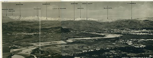 | Soggetto | Gorizia e le frazioni di Lucinico, a destra del fiume Isonzo, e Sant'Andrea a sinistra, riprese dal Monte San Michele. A destra in basso Savogna d'Isonzo. Sono indicati il Monte San Gabriele, l'altopiano della Bainsizza, Monte Santo, il monte Sabotino; delle Alpi Giulie le cime del Monte Nero, del Bogatin, del Tricorno, del Vrh nad Škrbino, del Gran Cucco di Tolmino e del Rodica |