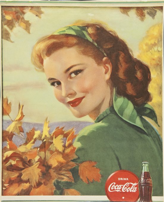 | Note | Il manifesto è parte di una serie di sei esemplari di tipo generico - ovvero progettato e stampato dallo stabilimento litogafico senza slogan o altre informazioni apportate, in un secondo tempo, da un'impresa tipografica - creati per la pubblicità della Coc Cola. John Pemberton farmaceutico, brevettò lo storico composto come tonico per la mente e per lo stomaco. Secondo alcuni biografi accidentalmente lo sciroppo fu mescolato con acqua carbonata al posto che acqua pura e così si creò la miscela effervescente. La bevanda si cominciò a vendere nella città di Atalanta con un buon esito e si pubblicizzò come "un tonico reale per il cervello e per i nervi". Nello stesso anno una farmacia mise in vendita il primo bicchiere di Coca-Cola, bevanda preparata con la ricetta “segreta” in vigore tuttora. All'inizio, per le sue caratteristiche medicinali, la Coca-Cola si vendette per la prima volta nei bar che non vendevano bevande alcoliche e che, nella maggior parte dei casi, facevano parte delle farmacie dell'epoca. Il prodotto è descritto come una bibita da bar e come un trattamento per curare la tisi. Frank Robinson, fu chi inventò il logo e il nome "Coca-Cola" usando la combinazione dei suoi ingredienti e fu così pubblicizzata nel 1887, anno in cui si depositò il brevetto dei suoi ingredienti. Però John Pemberton non riuscì a sfruttare molto la sua invenzione perché morì il 16 agosto del 1888. Poco prima della sua morte vendette la sua formula al signor Asa Candler che rapidamente si trasformerà non solo in uno degli uomini più ricchi di Atalanta e degli Stati uniti, ma in uno dei più ricchi del mondo. Nel 1891 la pubblicità diventa più aggressiva: nei calendari e nei cartelloni pubblicitari apparirono le "Coca-Cola Girls", queste ragazze, attraenti e seminude, aiutarono a incrementare la vendita della bibita nella popolazione maschile, soprattutto nei periodi di guerra. Sarà nel 1893 che si registrerà il
