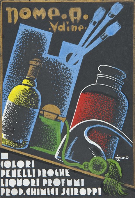 | Note | Bozzetto generico promozionale realizzato per una drogheria. Il cartello ripropone una tipologia di figurazione comune nella pubblicità di questo genere di prodotti (si veda il bozzetto inv. FC 076) in cui il manifesto o il cartello pubblicitario divengono una sorta di campionario degli aticoli realizzati dalla ditta reclamizzata. In questo bozzetto la resa realistica degli oggetti lascia il posto ad un nuovo modo di comunicare il carattere del prodotto pubblicizzato, in cui la creatività generata da forme sintetiche, segni nitidi e colori brillanti prevale sull'esigenza di riconoscibilità e identificazione del prodotto. |
