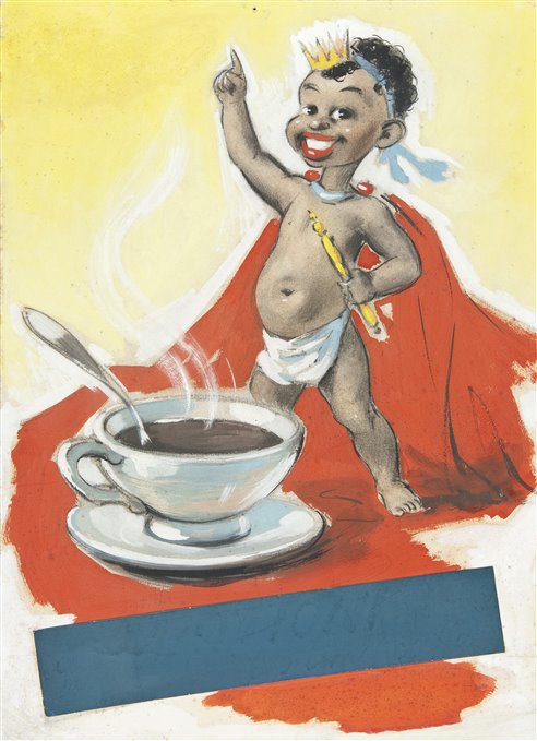 | Note | Bozzetto pubblicitario che vede raffigurato un gaio bimbo di colore che, vestito di mantello scarlatto, scettro e corona sul capo, sembra insignire il caffè fumante in bianca tazzina ai suoi piedi di qualità e requisiti "degni di un re". Sotto l'immagine del bimbo sovrano una banda di colore blu baltico nasconde una scritta ancora visibile: Mattioni, ovvero il marchio del caffè pubblicizzato. Fondata negli anni Venti, la Torrefazione Mattioni vanta una tradizione seconda a poche nel Friuli Venezia Giulia, terra particolarmente fertile nella produzione del caffè. Pionieri furono Lino ed Enrico Mattioni, originari di San Giovanni al Natisone, che nel 1922 si stabilirono a Gorizia, nell'attuale via Cadorna, e cominciarono ad occuparsi di caffè. La costituzione ufficiale della società risale però a quattro anni dopo, mentre è del 1934 l'inaugurazione della sede "storica" della F.lli Mattioni, in via Garibaldi 12, in quello che nella vecchia Gorizia era palazzo Maurovich, residenza privata del podestà del capoluogo isontino alla fine dell'800. Per sessant'anni la Torrefazione Mattioni ha dunque vissuto nel cuore della città, fornendo le case e decine di caffè di Gorizia e della regione con le proprie miscele, frutto di un'attenta cernita di prodotti "crudi" provenienti dal Brasile, dalla Colombia, dal Centro America e dall'Africa. |