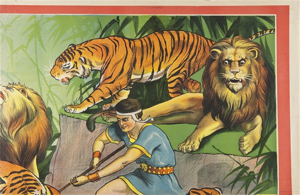 | Note | Il manifesto fa parte di una serie di affiches prodotti dallo Stabilimento Passero-Chiesa per gli spettacoli del gran Circo e Serraglio Fratelli Kludský. Il circo, originario della Repubblica Ceca, viene fondato nel 1902 da Antonín Kludský e viene chiuso nel 1934, alla morte dell'ultimo elefante. Kludský, con la sua grande famiglia - ha avuto ben 20 figli - nel corso degli anni alleva e addestra all'incirca 700 animali e fa esibire, davanti ad un pubblico sempre più nutrito ed entusiasta, un numero di esemplari che supera qualsiasi altra compagnia circense fino al primo conflitto mondiale. Sono molti i viaggi in Italia che fece la colorata carovana dei Kludský; se ne ricorda uno che attraversò l'intero Friuli, passando per il Trentino Alto Adige, tra il 1928 ed il 1920, ma si hanno testimonianze di uno spettacolo circense dell'artistica famiglia già nel 1910. Così il Gazzettino Popolare di martedì 8 novembre 1910 nel riferire delle grandiose rappresentazioni del circo Kludský insediatosi a Gorizia, sull’area del vecchio cimitero – suscitando gravi lamentazioni dall’Eco del Litorale - , sul gomito del Corso dove oggi si trova il Parco della Rimembranza: “Duemila circa d’ogni ceto, condizione e nazionalità gremivano l’altro ieri il vasto padiglione del rinomato Circo Serraglio Claudio Kludsky. Se ciò comprova un’altra volta la predilezione del pubblico goriziano per simili spettacoli, al punto da preferirli a quelli teatrali, bisogna però convenire che le rappresentazioni del circo sunnominato sono degne dell’attrattiva da esse esercitate. Bellissimi cavalli ammaestrati, la troupe acrobatica Brunetti, madamigella Orbassani con la sua scimmia ammaestrata, l’elefante gigantesco Baby, il domatore signor Hauer con il magnifico gruppo di leoni e tigri. Vera ammirazione desta il leone cavallerizzo Romulus”. Con molta probabilità questo affiche, come tutti gli esemplari circensi del Fondo Chiesa realzzati da Pietro Antonio Senci, è un manifesto generico, ovvero progettato e stampato dallo stabilimento litogafico per il Circo Kludský - che ne ordinava e acquistava numerose copie - senza alcuna indicazione relativa a luoghi e date dello spettacolo, informazioni che venivano aggiunte in un