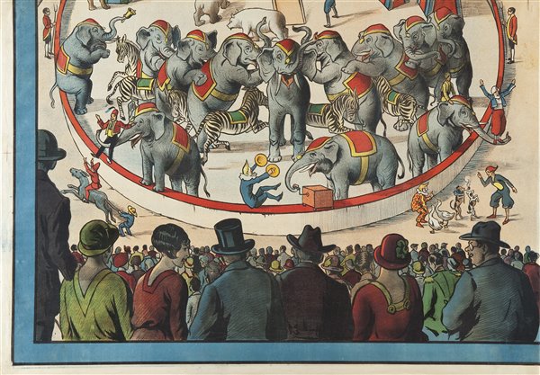 | Note | Il manifesto, non pervenutoci nella sua interezza ma soltanto nella sua parte sinistra, fa parte di una serie di affiches prodotti dallo Stabilimento Passero-Chiesa per gli spettacoli del gran Circo e Serraglio Fratelli Kludský. Il circo, originario della Repubblica Ceca, viene fondato nel 1902 da Antonín Kludský e viene chiuso nel 1934, alla morte dell'ultimo elefante. Kludský, con la sua grande famiglia - ha avuto ben 20 figli - nel corso degli anni alleva e addestra all'incirca 700 animali e fa esibire, davanti ad un pubblico sempre più nutrito ed entusiasta, un numero di esemplari che supera qualsiasi altra compagnia circense fino al primo conflitto mondiale. Sono molti i viaggi in Italia che fece la colorata carovana dei Kludský; se ne ricorda uno che attraversò l'intero Friuli, passando per il Trentino e l'Alto Adige, tra il 1918 ed il 1920, ma si hanno testimonianze di uno spettacolo circense dell'artistica famiglia già nel 1910. Così il Gazzettino Popolare di martedì 8 novembre 1910 nel riferire delle grandiose rappresentazioni del circo Kludský insediatosi a Gorizia, sull’area del vecchio cimitero – suscitando gravi lamentazioni dall’Eco del Litorale - , sul gomito del Corso dove oggi si trova il Parco della Rimembranza: “Duemila circa d’ogni ceto, condizione e nazionalità gremivano l’altro ieri il vasto padiglione del rinomato Circo Serraglio Claudio Kludsky. Se ciò comprova un’altra volta la predilezione del pubblico goriziano per simili spettacoli, al punto da preferirli a quelli teatrali, bisogna però convenire che le rappresentazioni del circo sunnominato sono degne dell’attrattiva da esse esercitate. Bellissimi cavalli ammaestrati, la troupe acrobatica Brunetti, madamigella Orbassani con la sua scimmia ammaestrata, l’elefante gigantesco Baby, il domatore signor Hauer con il magnifico gruppo di leoni e tigri. Vera ammirazione desta il leone cavallerizzo Romulus”. Con molta probabilità questa affiche, come tutti gli esemplari circensi del Fondo Chiesa realzzati da Pietro Antonio Sencig, è un manifesto generico, ovvero progettato e stampato dallo stabilimento litogafico per il Circo Kludský - che ne ordinava e acquistava numerose copie - senza alcuna indicazione relativa a luoghi e date dello spettacolo, informazioni che venivano aggiunte in un secondo tempo, da una qualsiasi tipografia, in occasione dell'esotico show. |