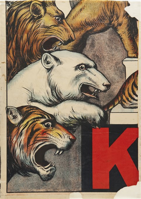 | Note | Il manifesto, non pervenutoci nella sua interezza, fa parte di una serie di affiches prodotti dallo Stabilimento Passero-Chiesa per gli spettacoli del gran Circo e Serraglio Fratelli Kludský. Il circo, originario della Repubblica Ceca, viene fondato nel 1902 da Antonín Kludský e viene chiuso nel 1934, alla morte dell'ultimo elefante. Kludský, con la sua grande famiglia - ha avuto ben 20 figli - nel corso degli anni alleva e addestra all'incirca 700 animali e fa esibire, davanti ad un pubblico sempre più nutrito ed entusiasta, un numero di esemplari che supera qualsiasi altra compagnia circense fino al primo conflitto mondiale. Sono molti i viaggi in Italia che fece la colorata carovana dei Kludský; se ne ricorda uno che attraversò l'intero Friuli, passando per il Trentino e l'Alto Adige, tra il 1928 ed il 1920, ma si hanno testimonianze di uno spettacolo circense dell'artistica famiglia già nel 1910. Così il Gazzettino Popolare di martedì 8 novembre 1910 nel riferire delle grandiose rappresentazioni del circo Kludský insediatosi a Gorizia, sull’area del vecchio cimitero – suscitando gravi lamentazioni dall’Eco del Litorale - , sul gomito del Corso dove oggi si trova il Parco della Rimembranza: “Duemila circa d’ogni ceto, condizione e nazionalità gremivano l’altro ieri il vasto padiglione del rinomato Circo Serraglio Claudio Kludsky. Se ciò comprova un’altra volta la predilezione del pubblico goriziano per simili spettacoli, al punto da preferirli a quelli teatrali, bisogna però convenire che le rappresentazioni del circo sunnominato sono degne dell’attrattiva da esse esercitate. Bellissimi cavalli ammaestrati, la troupe acrobatica Brunetti, madamigella Orbassani con la sua scimmia ammaestrata, l’elefante gigantesco Baby, il domatore signor Hauer con il magnifico gruppo di leoni e tigri. Vera ammirazione desta il leone cavallerizzo Romulus”. Con molta probabilità questo affiche, come tutti gli esemplari circensi del Fondo Chiesa realzzati da Pietro Antonio Sencig, è un manifesto generico, ovvero progettato e stampato dallo stabilimento litogafico per il Circo Kludský - che ne ordinava e acquistava numerose copie - senza alcuna indicazione relativa a luoghi