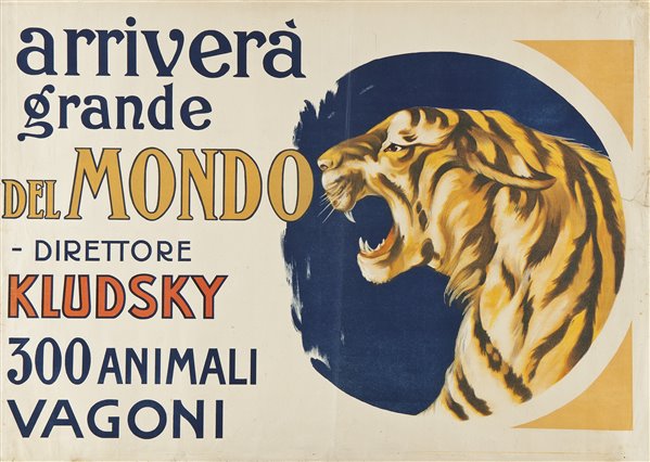 | Note | Il manifesto fa parte di una serie di affiches prodotti dallo Stabilimento Passero-Chiesa per gli spettacoli del gran Circo e Serraglio Fratelli Kludský. Il circo, originario della Repubblica Ceca, viene fondato nel 1902 da Antonín Kludský e viene chiuso nel 1934, alla morte dell'ultimo elefante. Kludský, con la sua grande famiglia - ha avuto ben 20 figli - nel corso degli anni alleva e addestra all'incirca 700 animali e fa esibire, davanti ad un pubblico sempre più nutrito ed entusiasta, un numero di esemplari che supera qualsiasi altra compagnia circense fino al primo conflitto mondiale. Sono molti i viaggi in Italia che fece la colorata carovana dei Kludský; se ne ricorda uno che attraversò l'intero Friuli, passando per il Trentino Alto Adige, tra il 1918 ed il 1920, ma si hanno testimonianze di uno spettacolo circense dell'artistica famiglia già nel 1910. Così il Gazzettino Popolare di martedì 8 novembre 1910 nel riferire delle grandiose rappresentazioni del circo Kludský insediatosi a Gorizia, sull’area del vecchio cimitero – suscitando gravi lamentazioni dall’Eco del Litorale -, sul gomito del Corso dove oggi si trova il Parco della Rimembranza: “Duemila circa d’ogni ceto, condizione e nazionalità gremivano l’altro ieri il vasto padiglione del rinomato Circo Serraglio Claudio Kludsky. Se ciò comprova un’altra volta la predilezione del pubblico goriziano per simili spettacoli, al punto da preferirli a quelli teatrali, bisogna però convenire che le rappresentazioni del circo sunnominato sono degne dell’attrattiva da esse esercitate. Bellissimi cavalli ammaestrati, la troupe acrobatica Brunetti, madamigella Orbassani con la sua scimmia ammaestrata, l’elefante gigantesco Baby, il domatore signor Hauer con il magnifico gruppo di leoni e tigri. Vera ammirazione desta il leone cavallerizzo Romulus”. Questo affiche, come molti degli esemplari circensi del Fondo Chiesa, è un manifesto generico, ovvero progettato e stampato dallo stabilimento litogafico per il Circo Kludský - che ne ordinava e acquistava numerose copie - senza alcuna indicazione relativa a luoghi e date dello spettacolo, informazioni che venivano aggiunte in un secondo tempo, da una qualsiasi tipografia, in occasione dell'esotico show. Con molta probabilità questo manifesto venne realizzato dalla ditta E. Passero, all'epoca già guidata ed amministrata da Giuseppe Chiesa - che però mantenne la firma di Passero almeno fino al 1911 -, in occasione dello spettacolo realizzato a Gorizia o, data la natura itinerante di tali manifestazione, nelle limotrofe città di Udine e Trieste. |