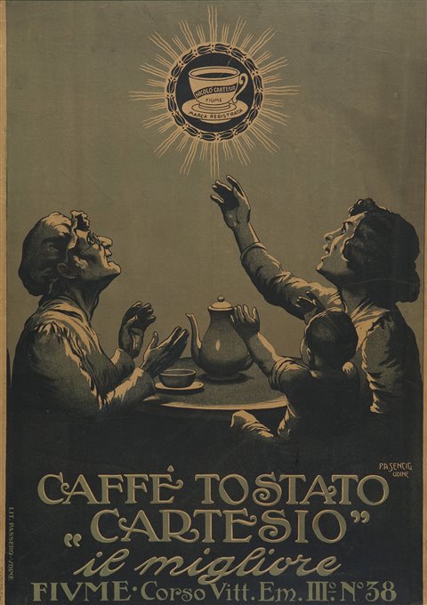 | Note | Nato a trieste il 6 luglio 1875 ed attivo nella città giuliana nei primi anni del '900, Sencig (poi Senci) si dedica soprattutto alla grafica applicata alla cartolina e a varie forme di ricorrenza o pubblicità come locandine o manifesti. Disegna per la Lega Nazionale, per la Festa del Grillo. Nel 1923 si trasferisce definitivamente a Udine ed avvia un rapporto di collaborazione con lo Stabilimento Passero-Chiesa di cui diviene il principale disegnatore "interno" conseguendo un'attività cartellonistica di un certo spessore. Si esprime con una grafica di ascendenza austriaca fatta di solido e brillante naturalismo che porta negli anni '20 ad una dimensione più popolare e a tratti fumettistica. L'artista si evolve poi verso una stilizzazione che negli anni '30 si impregna di novecentismo e raggiunge esiti di esasperata geometrizzazione. Muore a Udine il 2 novembre 1952. Anche se il Sencig intraprende stabilmente un rapporto con la Ditta E. Passero di G. Chiesa nel 1923, già nel primo decennio del '900 collabora con la tipografia udinese realizzando alcune illustrazioni per volumi come, ad esempio, quello per la Lega Nazionale "Istituti scolastici della Lega Nazionale", Trieste e Monfalcone, Litografia E. Passero, Trieste, Legatoria Pippan & Bortuzzo del 1911, in cui 41 tavole a colori raffiguranti gli Istituti della Lega Nazionale nella Venezia Giulia sono illustrate da pittori quali Flumiani, Orell, Goyon, Parin, Croatto, Grimani, Wostry e lo stesso Sencig. Queste occasionali collaborazioni potrebbero riguardare anche il manifesto creato dall'artista triestino per il caffè tostato "Cartesio" probabilmente risalente al primo '900. Tale osservazione è ipotizzabile sia dall'analisi del soggetto realizzato secondo dettami stilistici che hanno caratterizzato la cartellonistica tra la fine del XIX e gli inizi del XX secolo, sia dalla dicitura stampata nel poster, ovvero il nome della tipografia. Si legge infatti nel margine destro del manifesto, in basso, "Litografia Passero di Udine", titolo che l'azienda friulana ha mantenuto almeno fino al 1911 quando, alla morte del titolare Enrico Passero, gli subentra Giuseppe Chiesa. La denominazione dello stabilimento viene poi nuovamente sostituita dallo stesso Chiesa