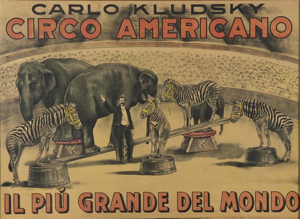 | Note | Il manifesto fa parte di una serie di affiches prodotti dallo Stabilimento Passero-Chiesa per gli spettacoli del gran Circo e Serraglio Fratelli Kludský. Il circo, originario della Repubblica Ceca, viene fondato nel 1902 da Antonín Kludský e viene chiuso nel 1934, alla morte dell'ultimo elefante. Kludský, con la sua grande famiglia - ha avuto ben 20 figli - nel corso degli anni alleva e addestra all'incirca 700 animali e fa esibire, davanti ad un pubblico sempre più nutrito ed entusiasta, un numero di esemplari che supera qualsiasi altra compagnia circense fino al primo conflitto mondiale. Sono molti i viaggi in Italia che fece la colorata carovana dei Kludský; se ne ricorda uno che attraversò l'intero Friuli, passando per il Trentino Alto Adige, tra il 1928 ed il 1920, ma si hanno testimonianze di uno spettacolo circense dell'artistica famiglia già nel 1910. Così il Gazzettino Popolare di martedì 8 novembre 1910 nel riferire delle grandiose rappresentazioni del circo Kludský insediatosi a Gorizia, sull’area del vecchio cimitero – suscitando gravi lamentazioni dall’Eco del Litorale - , sul gomito del Corso dove oggi si trova il Parco della Rimembranza: “Duemila circa d’ogni ceto, condizione e nazionalità gremivano l’altro ieri il vasto padiglione del rinomato Circo Serraglio Claudio Kludsky. Se ciò comprova un’altra volta la predilezione del pubblico goriziano per simili spettacoli, al punto da preferirli a quelli teatrali, bisogna però convenire che le rappresentazioni del circo sunnominato sono degne dell’attrattiva da esse esercitate. Bellissimi cavalli ammaestrati, la troupe acrobatica Brunetti, madamigella Orbassani con la sua scimmia ammaestrata, l’elefante gigantesco Baby, il domatore signor Hauer con il magnifico gruppo di leoni e tigri. Vera ammirazione desta il leone cavallerizzo Romulus”. Con molta probabilità questo manifesto venne realizzato dalla ditta E. Passero, all'epoca già guidata ed amministrata da Giuseppe Chiesa, in occasione dello spettacolo realizzato a Gorizia o, data la natura itinerante di tali manifestazione, nelle limotrofe città di Udine e Trieste. |