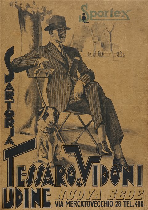 | Note | Inaugurata nel 1932 la sartoria Tessaro e Vidoni nella nuova sede di via Mercatovecchio. La moda maschile viene pubblicizzata in questo manifesto utilizzando l'immagine accattivante di un uomo, in un ricercato completo sartoriale, che "elegantemente assorto" fuma una sigaretta in un parco. In primo piano, in carattere masiccio e di colore scuro, campeggia il nome della sartoria: "La Torinese" di Tessaro & Vidoni; tuttavia, nonostante le importanti dimensioni del lettering, a fare da protagonista nel manifesto è il gentiluomo con il suo abito raffinato, coordinato con scarpe e cappello. In contrasto con l’abbigliamento femminile costituito da abiti che si fanno vanto di distinguersi l’uno dall’altro per colore, foggia o decori, l’abbigliamento maschile cerca l’omologazione. Regole precise e inderogabili definiscono nel dettaglio come deve essere l’abito per ogni circostanza tanto che ogni completo è distinguibile da quello degli altri uomini presenti nella stessa sala solo, eventualmente, per la qualità del tessuto e della fattura. La precisione e l’accuratezza del taglio diventano quindi elementi determinanti e tenuti in gran conto, e le tecniche sartoriali subiscono una sensibile evoluzione permettendo di creare capi che seguano con maggior precisione ed eleganza le linee del corpo, pur non compromettendo la libertà di movimento. Questo farà del sarto da uomo un artigiano estremamente specializzato, a cui le donne stesse si rivolgono per far realizzare i loro tailleur. |