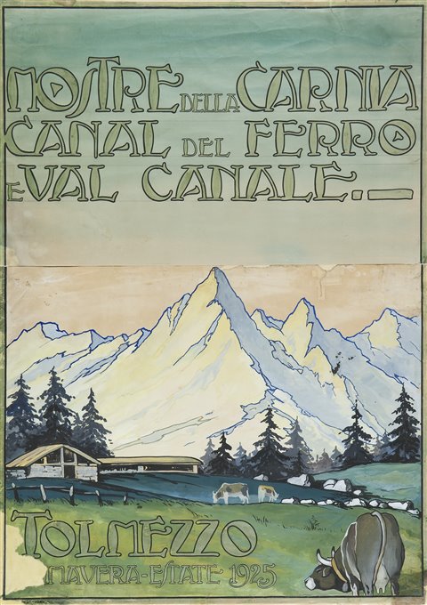 | Note | Manifesto realizzato per la promozione delle Mostre della Carnia, Canal del Ferro e Val Canale, tradizionali manifestazioni del luogo in cui l'artigianato carnico, attraverso le botteghe depositarie di una tradizione millenaria tramandata da padre a figlio, esprimeva il connubio tra storia ed arte.Si promuoveva l'artigianato artistico e di tradizione: l'oggettistica in ceramica, in legno, e in vetro, le bambole, i tessuti, i mobili decorati e intagliati, la scultura, la pittura, i tappeti e gli arazzi, l'arte orafa, le stufe in pietra e maiolica e molto altro. Ogni manufatto si distingueva per la peculiarità delle lavorazioni e la qualità dei materiali usati e tali prodotti venivano raccolti ed esposti nelle Mostre carniche con lo scopo di far conoscere da un lato la produzione artigianale e artistica della Carnia. L'affiche raffigura una classica veduta del paesaggio montano del luogo. |