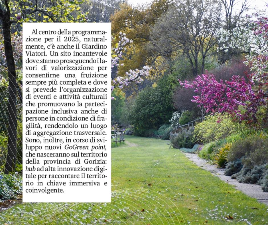 Al centro della programmazione per il 2025, naturalmente, vi sarà anche il Giardino Viatori, dove stanno proseguendo i lavori di valorizzazione per consentirne una fruizione sempre più completa e dove si prevede l’organizzazione di eventi ed attività culturali che promuovano la partecipazione inclusiva anche di persone in condizione di fragilità, rendendolo un luogo di aggregazione trasversale.
