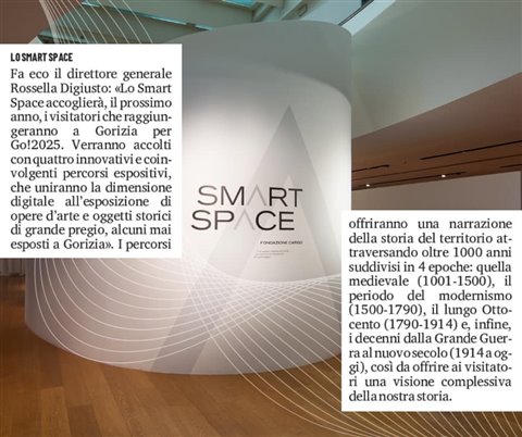 “Il prossimo anno i visitatori che raggiungeranno Gorizia per GO!2025 verranno accolti nello Smart Space da quattro innovativi e coinvolgenti percorsi espositivi, che uniranno la dimensione digitale all’esposizione di opere d’arte e oggetti storici di grande pregio, alcuni mai esposti a Gorizia”, – specifica il Direttore Generale Rossella Digiusto – “I percorsi offriranno una narrazione della storia del territorio attraversando oltre 1000 anni suddivisi in 4 epoche: quella medievale (1001-1500), il periodo del modernismo (1500-1790), il lungo ottocento (1790-1914) e infine i decenni dalla Grande Guerra al nuovo secolo (1914-oggi), così da offrire ai visitatori una visione complessiva della nostra storia”.