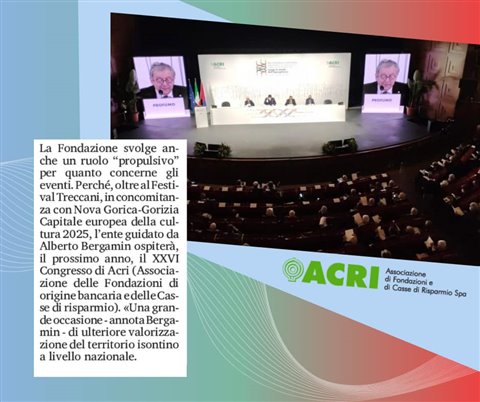 In concomitanza con l’evento di “Nova Gorica-Gorizia Capitale Europea della Cultura 2025”, nel 2025 la Fondazione ospiterà inoltre il XXVI Congresso di Acri – Associazione delle Fondazioni di origine bancaria e delle Casse di Risparmio, un importante occasione di ulteriore valorizzazione del territorio isontino a livello nazionale.