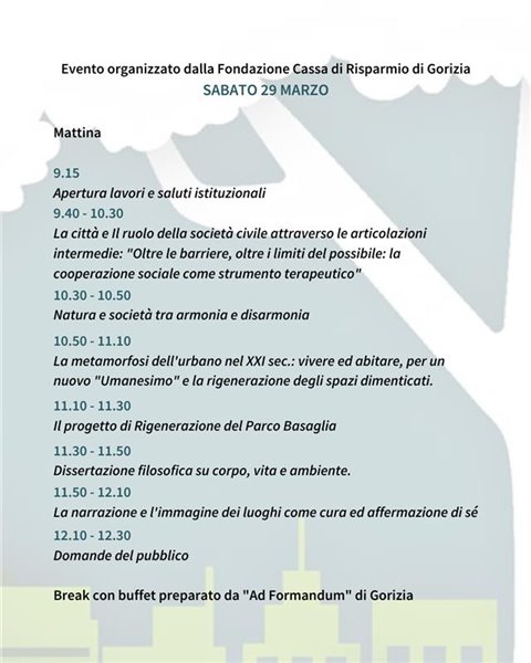 Ne abbiamo discusso oggi al convegno “Territori e Confini dell’Invisibile: Il Verde Terapeutico e la sua Progettualità”, organizzato dalla Fondazione Cassa di Risparmio di Gorizia in collaborazione con la Comunità Terapeutica “La Tempesta” e patrocinato da Azienda Sanitaria Universitaria Giuliano Isontina e dalla Regione Friuli Venezia Giulia.