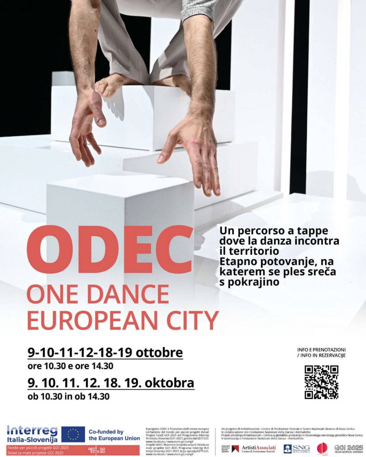 ODEC è un progetto internazionale che utilizza la danza e le performing arts per esplorare la conurbazione transfrontaliera di Nova Gorica e Gorizia. Il progetto prevede la realizzazione di undici performance in altrettanti luoghi di grande valore storico, firmate da alcuni dei più significativi coreografi contemporanei. Le performance compongono un percorso a tappe che si snoda tra i due nuclei urbani, costituendo un’esperienza dinamica e fluida del territorio da parte degli abitanti e dei visitatori. Il progetto contribuisce alla strategia di GO! 2025 promuovendo l’idea di un’unica città aperta senza confini.