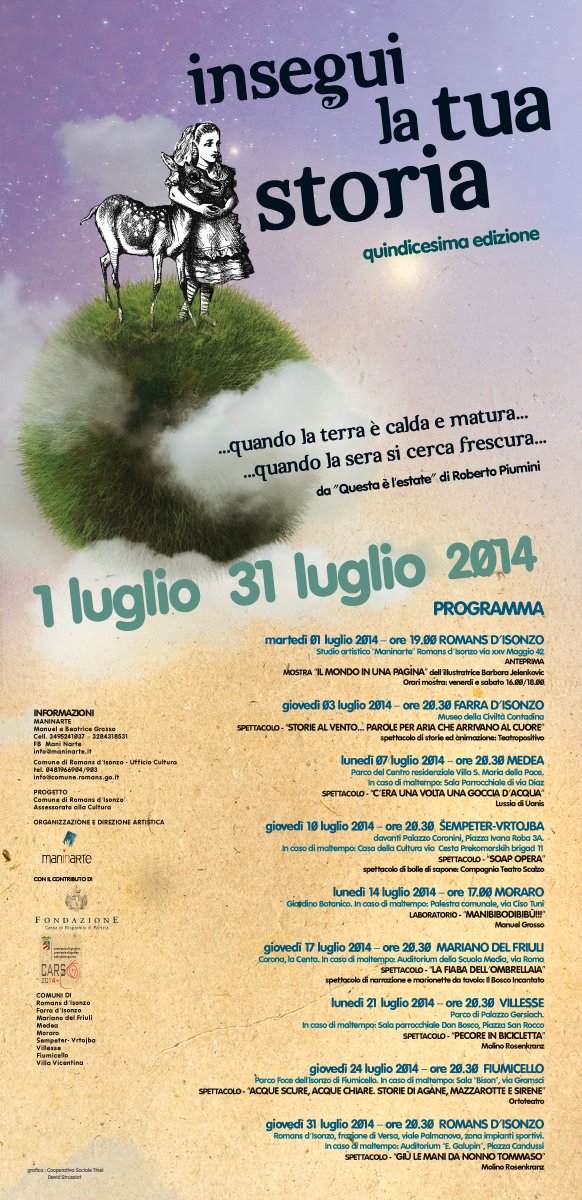 “Insegui la tua Storia” è un progetto ideato dal comune di Romans d'Isonzo e sostenuto dai comuni di: Farra d'Isonzo, Fiumicello/Villa Vicentina, Mariano del Friuli, Medea, Moraro, Šempeter-Vrtojba e Villesse. Con il contributo della Provincia di Gorizia e della Fondazione CARIGO, la direzione artistica è affidata allo Studio artistico MANinARTE di Manuel Grosso.