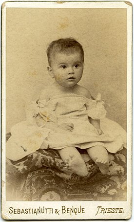 Note | Sul recto del supporto secondario: SEBASTIANUTTI & BENQUE TRIESTE. Sul verso del supporto secondario: Francesco Benque/ Successore a/ Sebastianutti & Benque/ Premiati in tutte le esposizioni/ con prime medaglie./ TRIESTE/ PIAZZA DELLA BORSA 10/ Vengono conservate le negative/ KUHLE & MIKSCHE WIEN Sul verso del supporto secondario, manoscritto: Maria di mesi sei Maria Margherita Luzzatto, nata a Trieste il 22 aprile 1897, era figlia primogenita dell'avvocato Giuseppe Luzzatto e della pittrice Alice Fegitz |